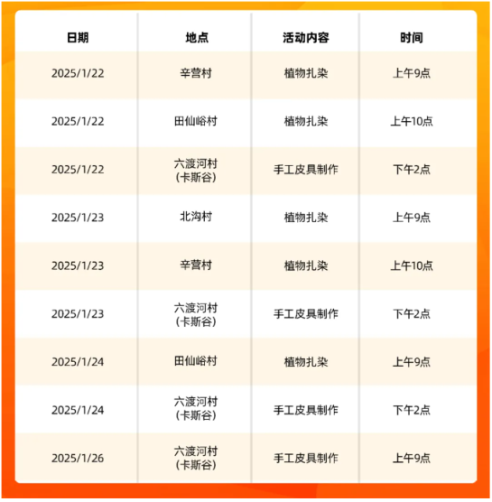 本次活动为入住渤海镇民宿的游客及本镇村民准备了植物扎染、手工皮具制作等活动,每场15人次免费体验,先到先得。